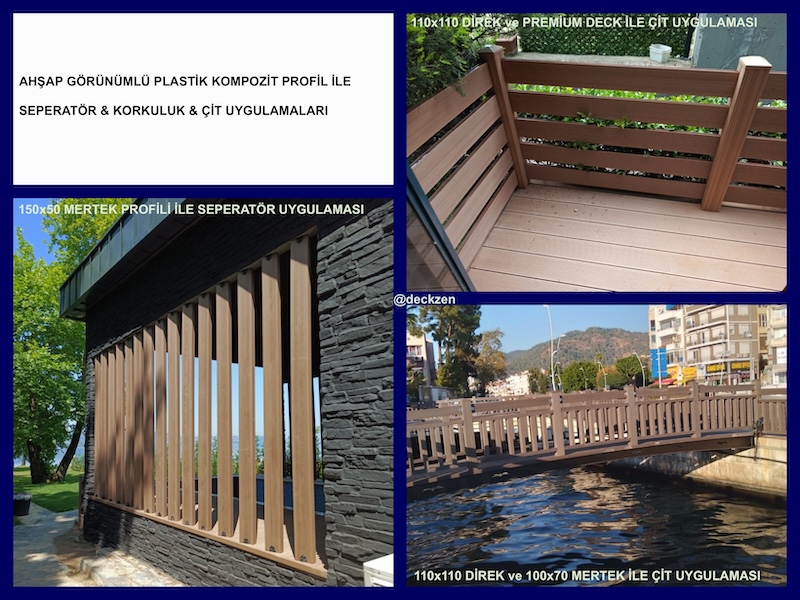 Farklı ölçülerdeki profil, mertek ve direklerimizi; çit uygulamaların da, cephe ve duvar kaplamaların da, güneş kırıcı ve seperatör uygulamaların da, pergola ve kamelya uygulamalarında kullanabileceğiniz geniş bir uygulama yelpazesine sahiptir.
